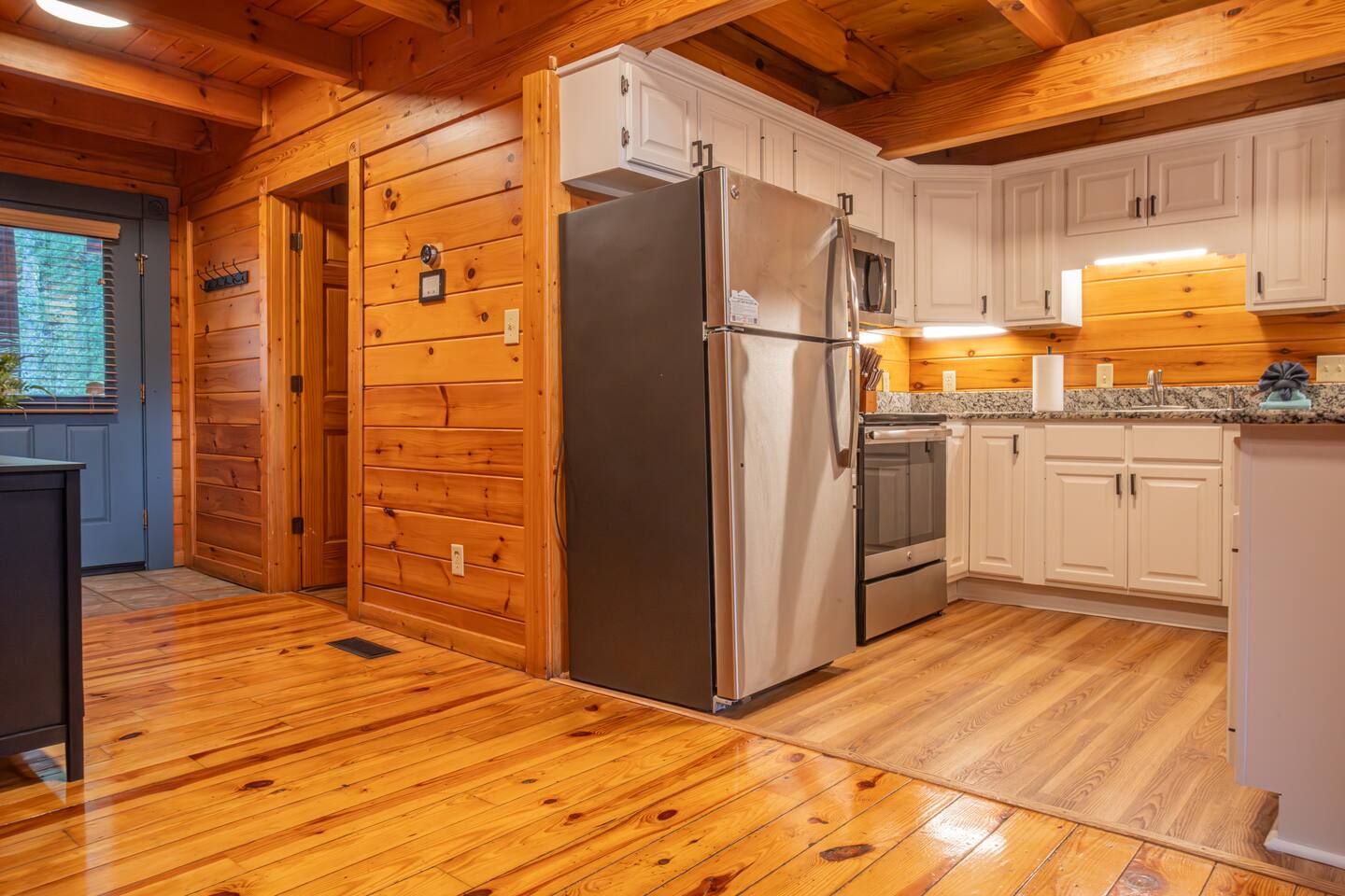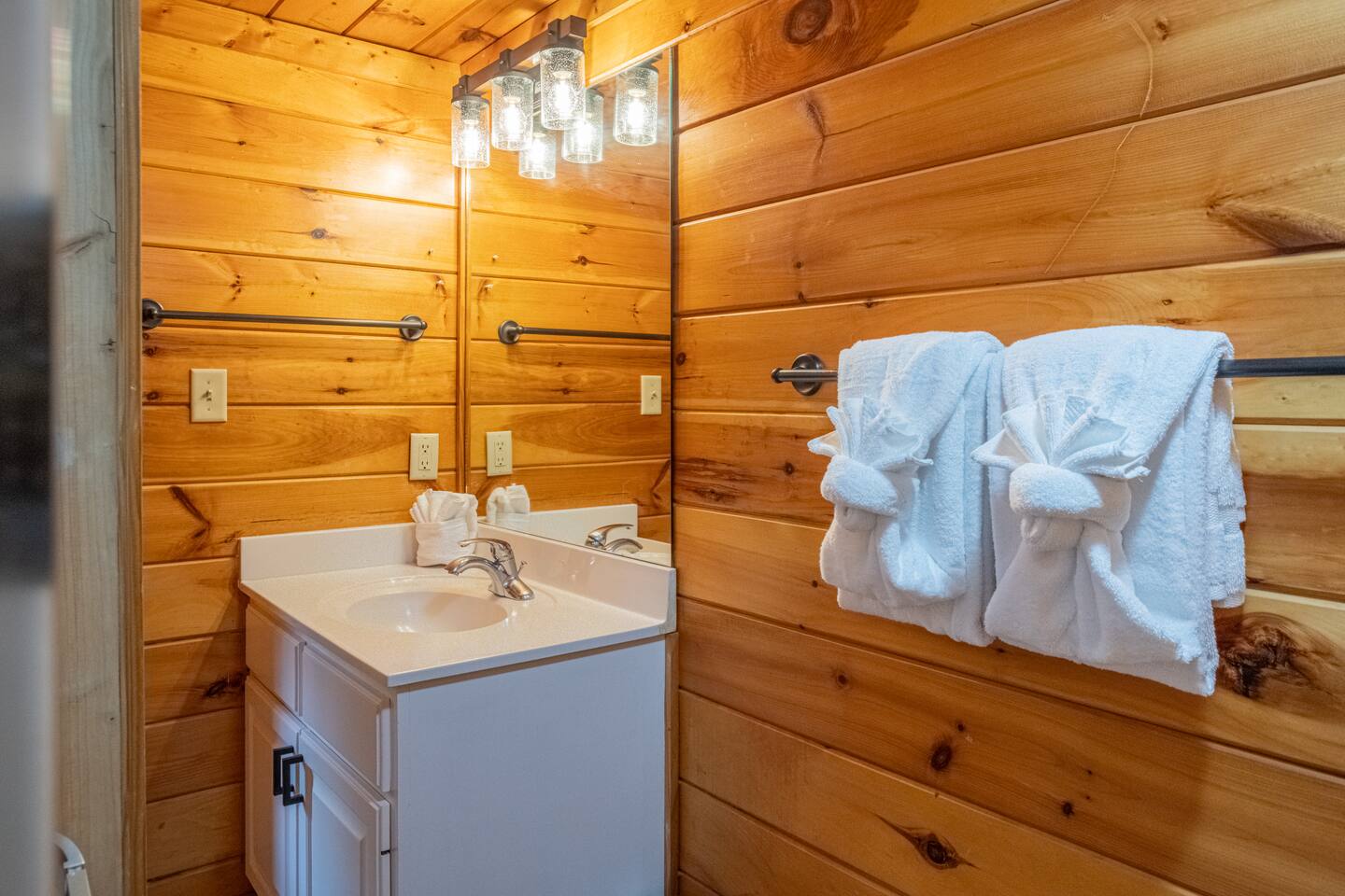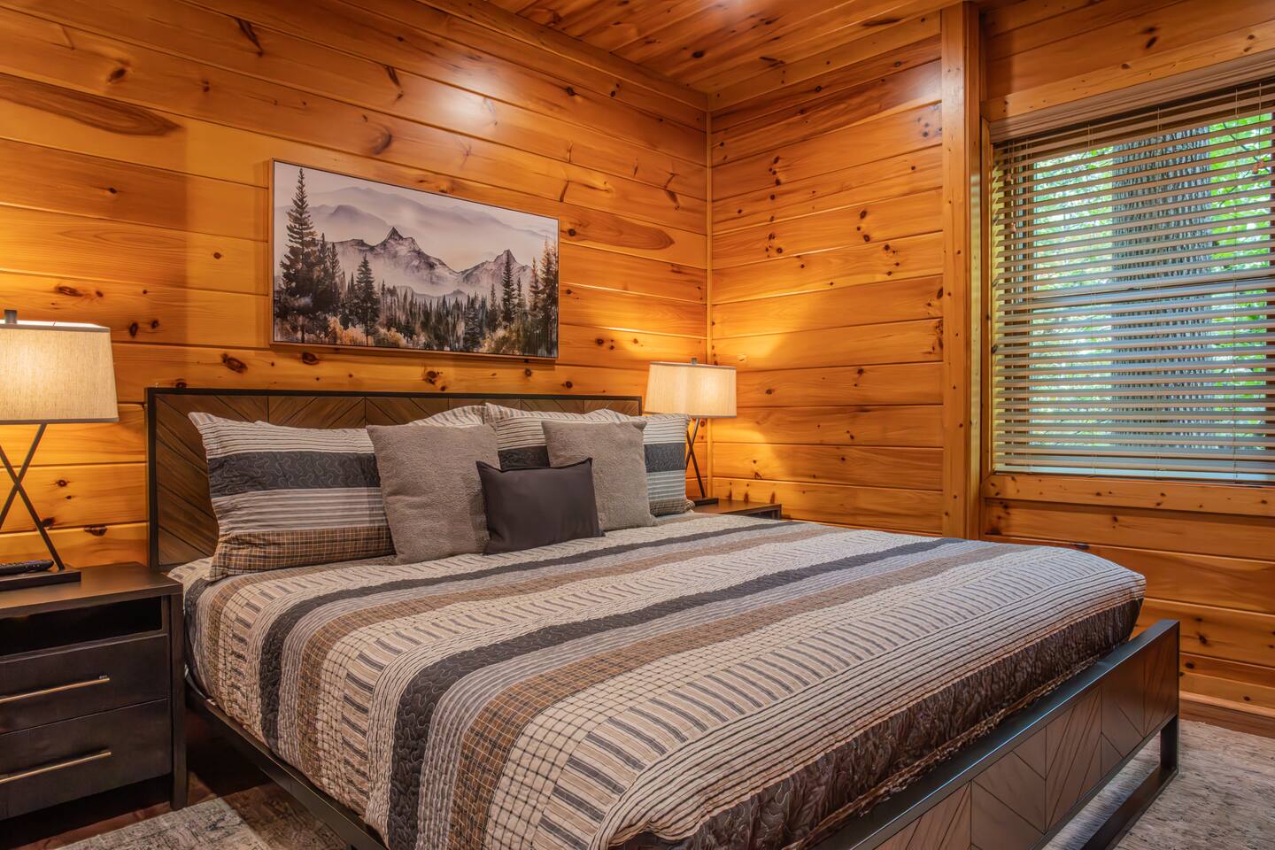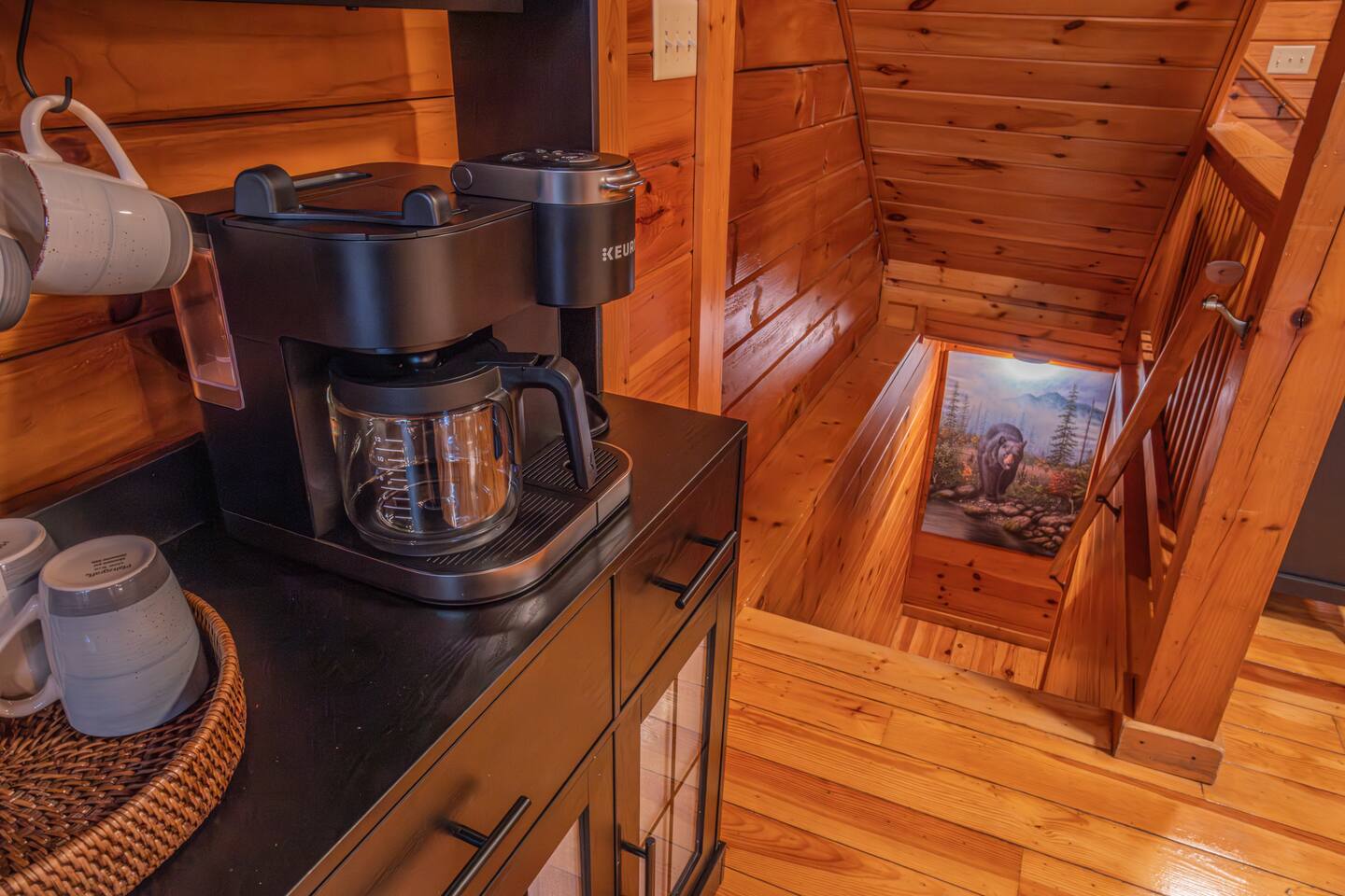 Step into this stunning resort cabin and experience a perfect blend of rustic mountain charm and modern comfort. With five spacious bedrooms, 3.5 baths, and a thoughtfully designed open-concept layout, it offers a serene retreat ideal for families and groups. The cozy living room invites you to unwind with plush sofas, two comfy armchairs, and a beautiful electric fireplace. A large wall-mounted TV sits above, creating a perfect spot for movie nights. The sofa easily converts into a queen bed, providing additional space for up to two more guests. Prepare anything from morning pancakes to gourmet dinners in the fully equipped kitchen, which includes a fridge with an ice maker, a full stove and oven, a microwave, a coffee maker, and a dishwasher. Enjoy your meals together around the spacious dining table or the breakfast nook set for four. Retreat to the five tastefully decorated bedrooms spread across the three levels. Each features soft bedding, ample closet space, and a peaceful forest view. The master bedroom on the main floor boasts a king-size bed and an en suite bath, while the upstairs loft offers a built-in 4 twin bunks and a private den area. The lower level is perfect for families, with three more bedrooms, all with comfy king beds. Three and a half bathrooms, each sparkling clean, with walk-in showers, complete with fluffy towels and essential toiletries. For fun, head to the game room with an arcade console, or step outside to the covered deck. Relax in a swing on the top deck, dine al fresco with the BBQ, or take a soothing soak in the hot tub while soaking up views of the surrounding woodlands. As part of a premium resort, you’ll also have access to a seasonal community pool—perfect for a refreshing dip during warm summer days. Whether you’re planning a relaxing escape or a mountain adventure, this cabin offers everything you need for an unforgettable stay in Gatlinburg.