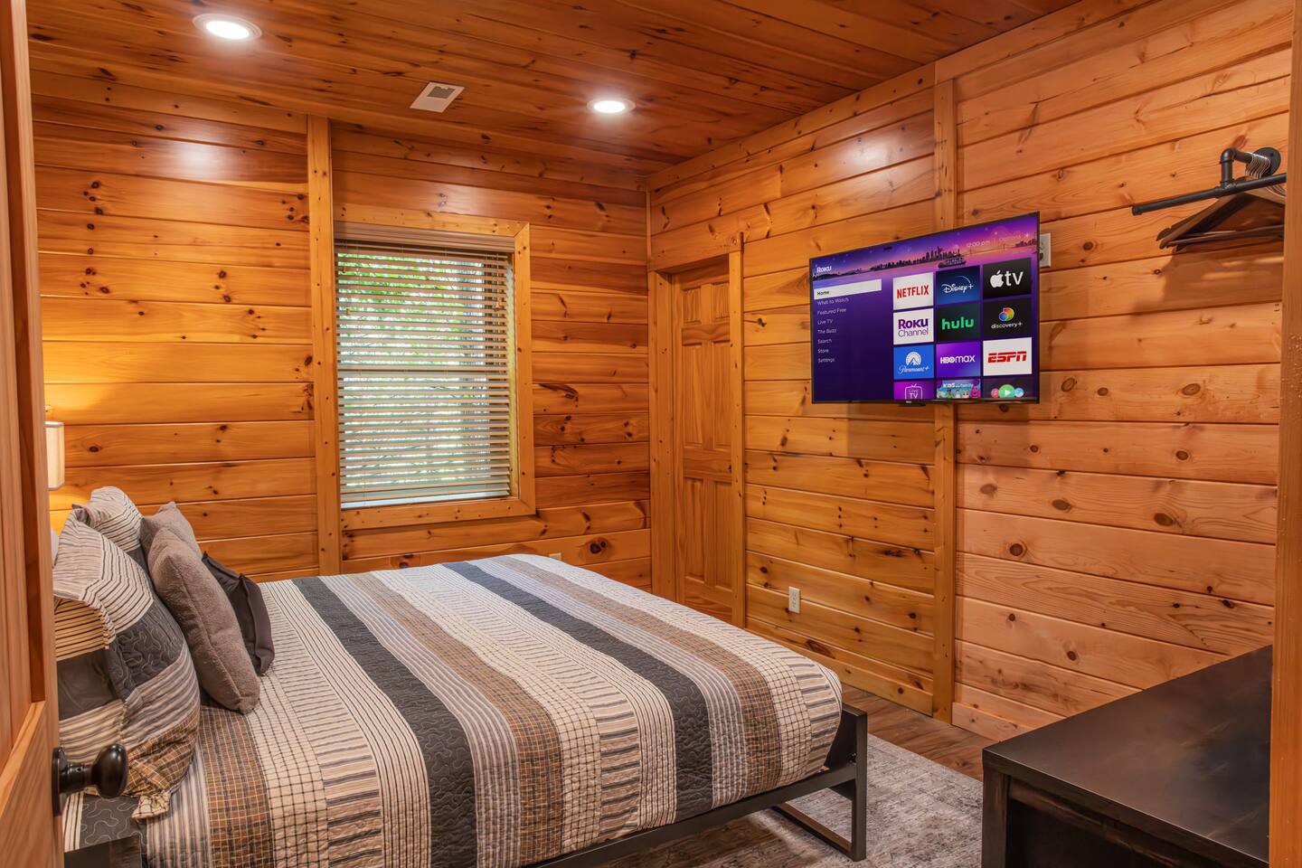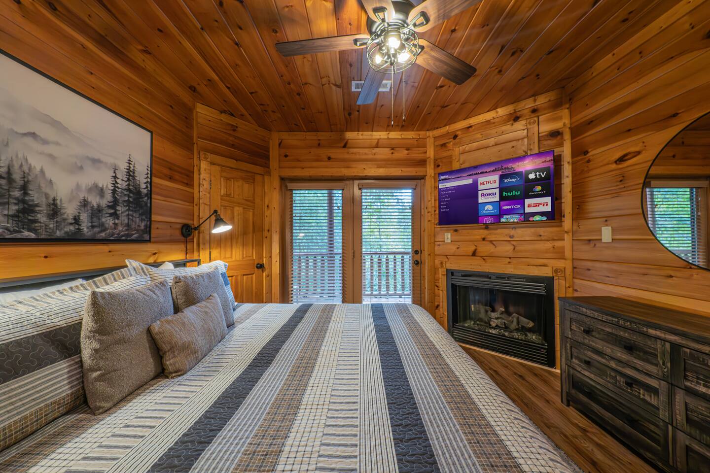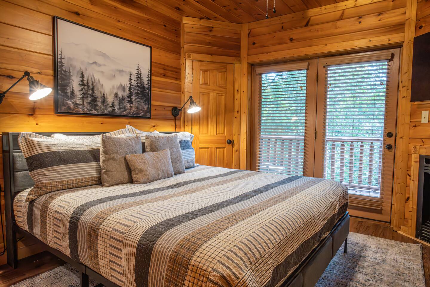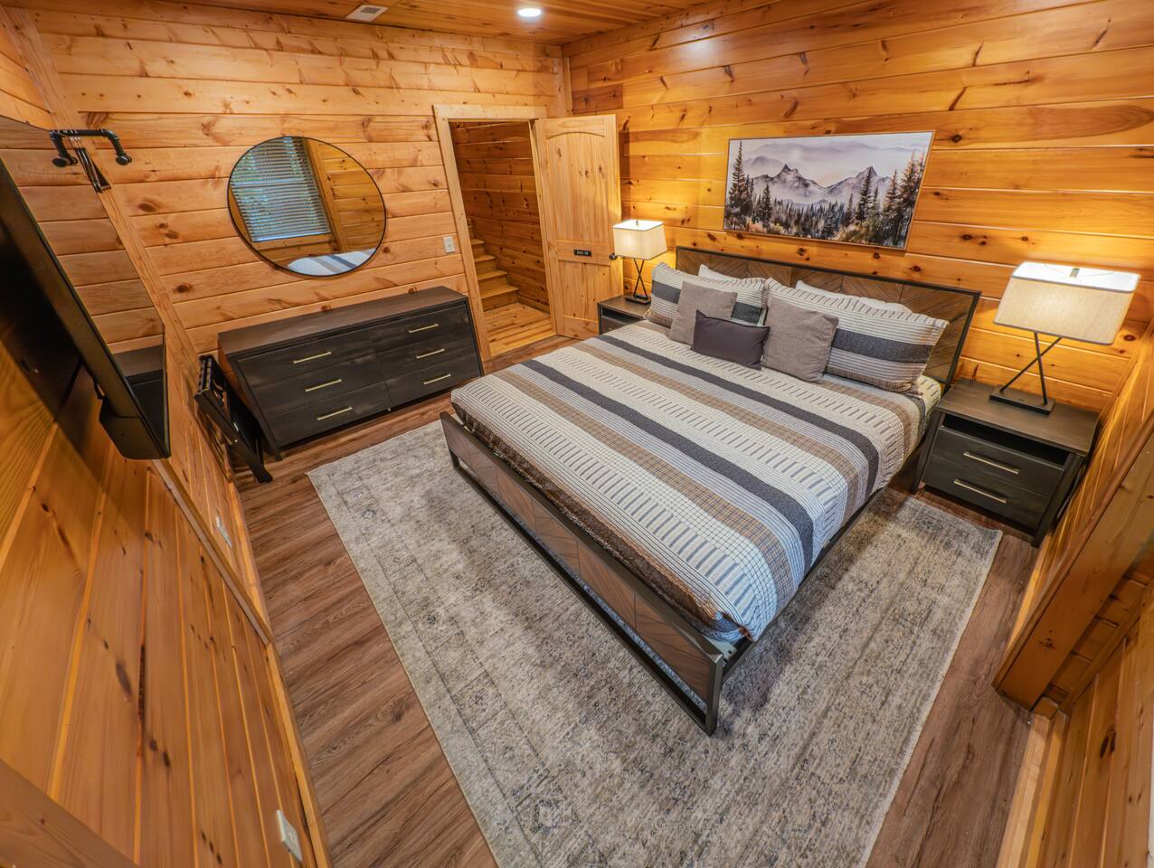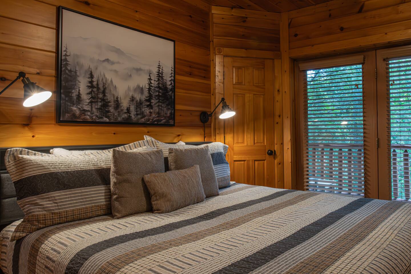 Step into this stunning resort cabin and experience a perfect blend of rustic mountain charm and modern comfort. With five spacious bedrooms, 3.5 baths, and a thoughtfully designed open-concept layout, it offers a serene retreat ideal for families and groups. The cozy living room invites you to unwind with plush sofas, two comfy armchairs, and a beautiful electric fireplace. A large wall-mounted TV sits above, creating a perfect spot for movie nights. The sofa easily converts into a queen bed, providing additional space for up to two more guests. Prepare anything from morning pancakes to gourmet dinners in the fully equipped kitchen, which includes a fridge with an ice maker, a full stove and oven, a microwave, a coffee maker, and a dishwasher. Enjoy your meals together around the spacious dining table or the breakfast nook set for four. Retreat to the five tastefully decorated bedrooms spread across the three levels. Each features soft bedding, ample closet space, and a peaceful forest view. The master bedroom on the main floor boasts a king-size bed and an en suite bath, while the upstairs loft offers a built-in 4 twin bunks and a private den area. The lower level is perfect for families, with three more bedrooms, all with comfy king beds. Three and a half bathrooms, each sparkling clean, with walk-in showers, complete with fluffy towels and essential toiletries. For fun, head to the game room with an arcade console, or step outside to the covered deck. Relax in a swing on the top deck, dine al fresco with the BBQ, or take a soothing soak in the hot tub while soaking up views of the surrounding woodlands. As part of a premium resort, you’ll also have access to a seasonal community pool—perfect for a refreshing dip during warm summer days. Whether you’re planning a relaxing escape or a mountain adventure, this cabin offers everything you need for an unforgettable stay in Gatlinburg.