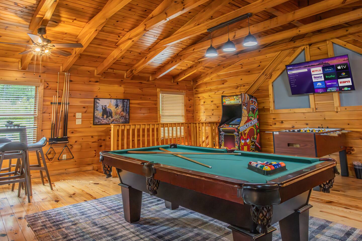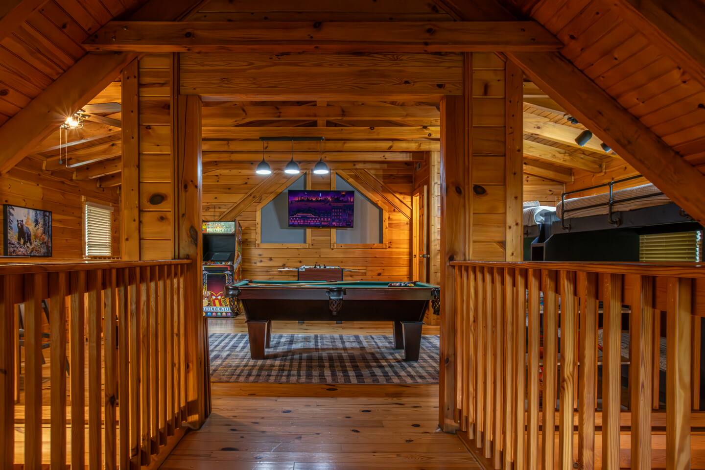 Nestled in the heart of the mountains, just minutes from Downtown Gatlinburg and 9 miles from Smoky Mountains National Park, this charming log cabin is the ideal retreat for up to 14 guests across 5 spacious bedrooms. With nearly 3,000 sq. ft. of living space, it features a hot tub, multiple balconies, an arcade game room, soaring ceilings, and comfortable beds. Guests can also enjoy a community swimming pool—perfect for unwinding after a day of exploring everything the Smokies have to offer.