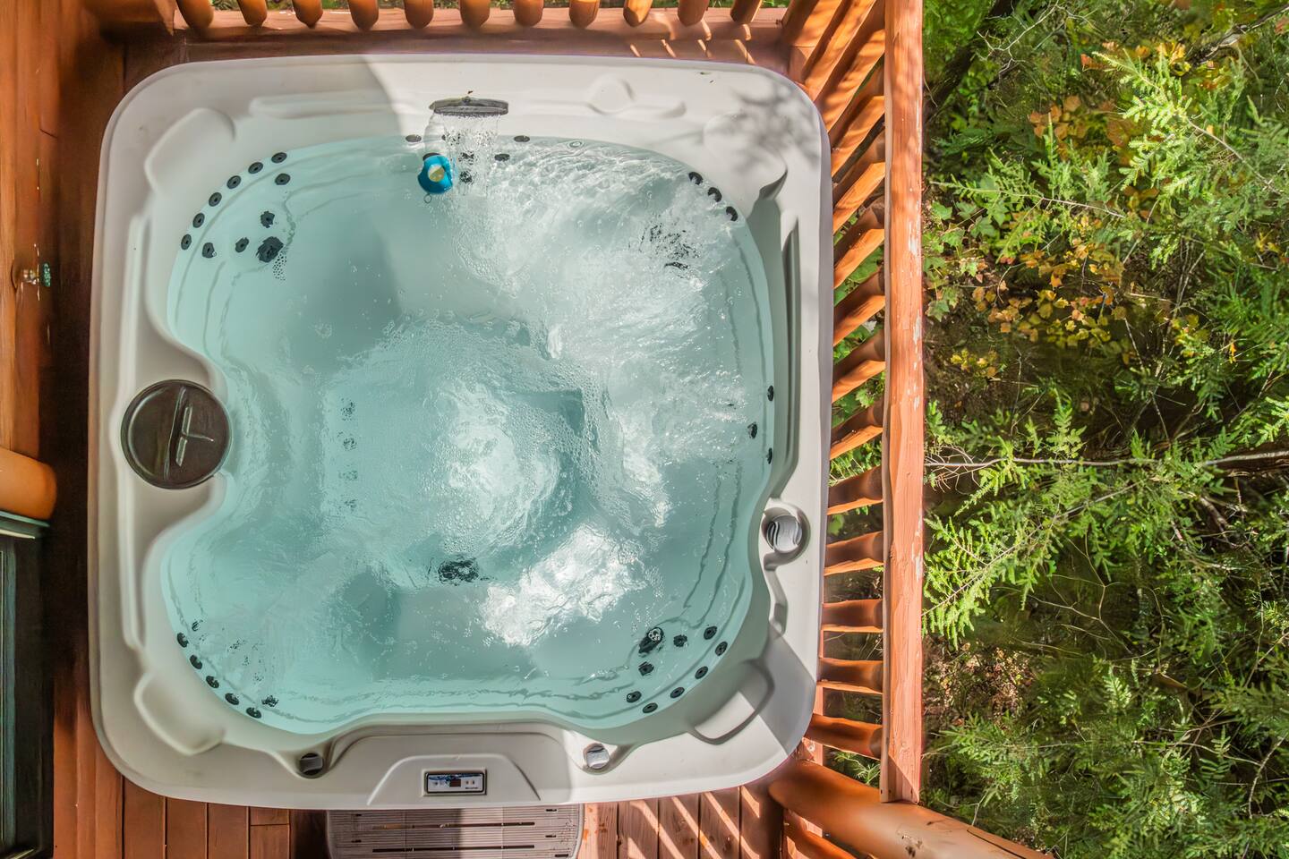 Guests have private access to the entire cabin as well as free Wi-Fi, shared parking space for up to 6 cars, access to the community pool, and the outdoor area with a BBQ and hot tub.