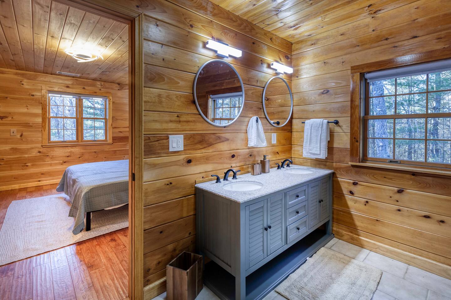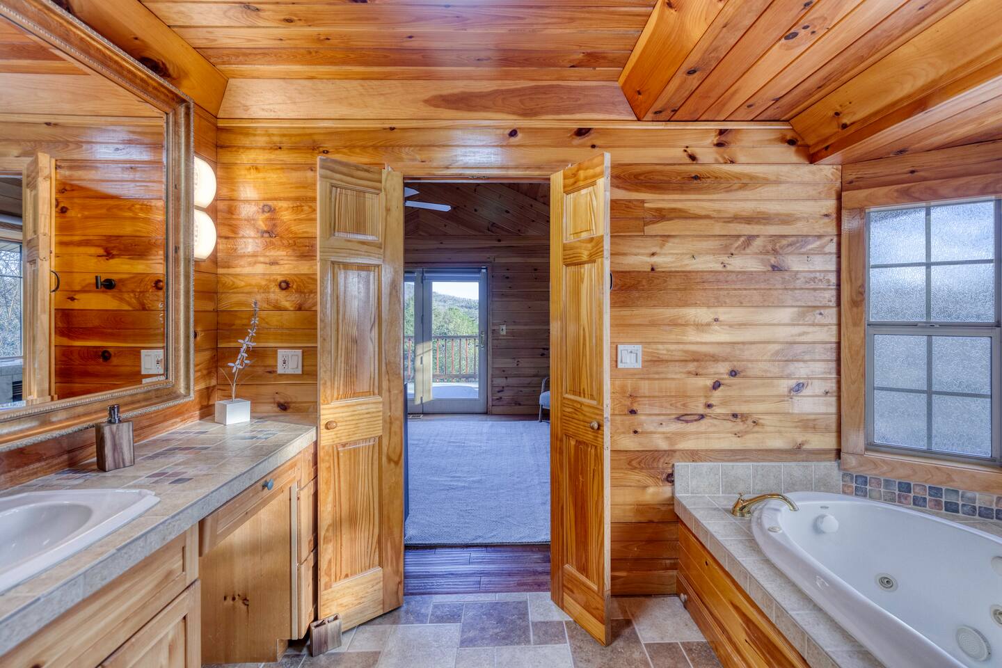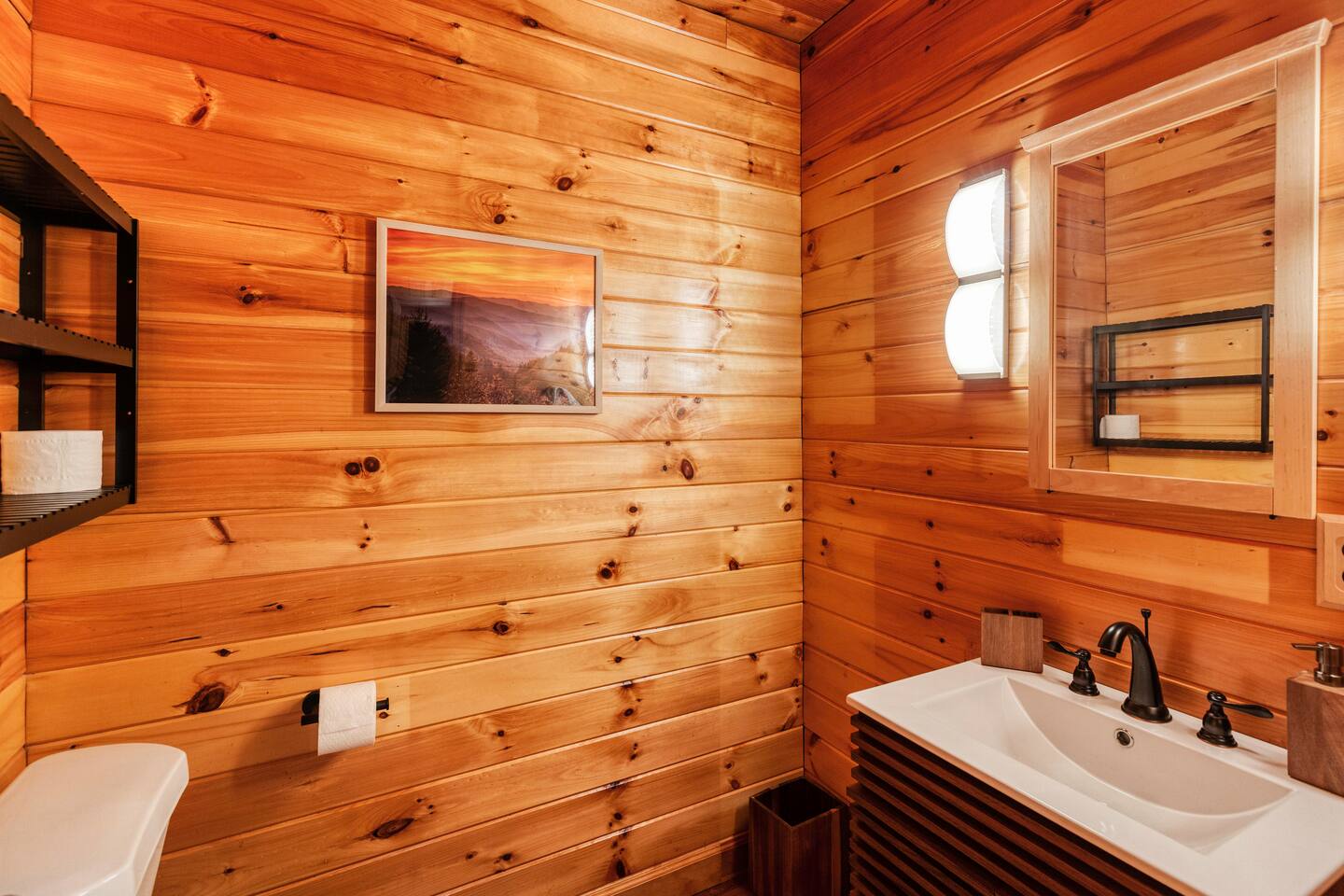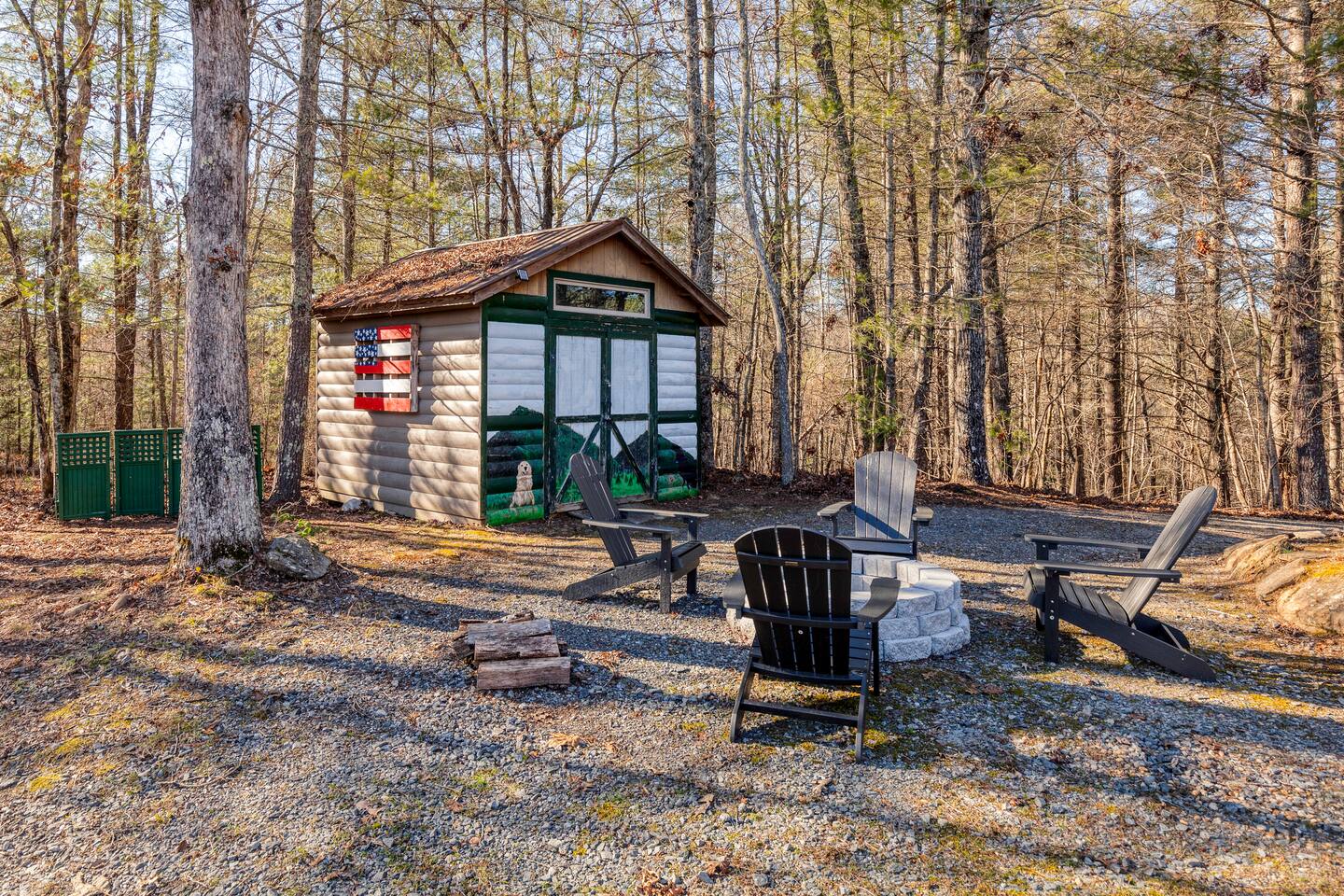 Guests have private access to the entire cabin and outdoor areas with a hot tub, fire pit, and fireplace as well as free Wi-Fi, and free parking.