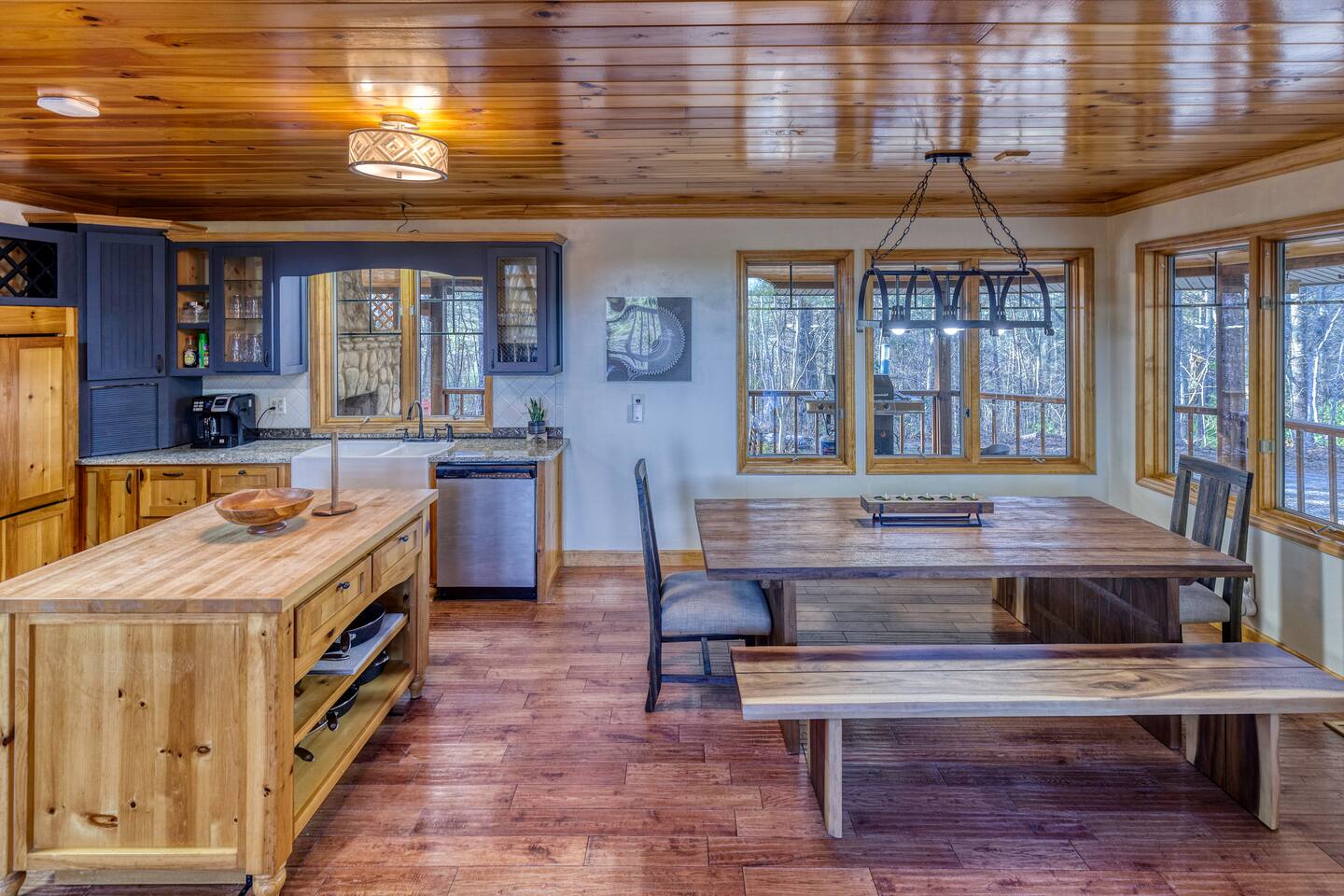 Located just 90 minutes north of Atlanta, Blue Ridge offers 106,000 acres of national forest with more than 100 miles of rivers and streams and Lake Blue Ridge, a 3,290-acre crystal clear freshwater playground. There is something for everyone at Blue Ridge from outdoor adventures and family-friendly fun to shopping, fine dining and relaxation with nothing around but picturesque scenery and the great outdoors. Explore the history of the area with some different tours, scenic railways and trails. Check out some of the many art galleries, theaters and shops or if you're looking for a slower paced day relax in one of the many spas and feel the all your stress melt away. Stop for a drink or two at the many wineries and breweries in the area then dine out with many great options ranging from classic burgers through to fine dining for that special occasion. For the adrenalin junkies, head to the Blue Ridge Adventure Park or the Blue Ridge Adventure Race where you can paddle down the Tocca River, mountain bike at Bull Mountain and explore miles of rivers, lakes trails and beautiful woodland surrounding Blue Ridge. Hit the water and try kayaking and fishing, saddle up for a guided horse ride or go by foot and walk to waterfalls, take the scenic train through the mountains or bring along your golf clubs for a day on the green. With so much to see and do you will already be planning your next big adventure to Blue Ridge! THINGS TO DO: Besides winding down at the cabin, there are plenty of adventures that await you in the countryside! Whether you want to go horseback riding, white water rafting, kayaking, fishing, hiking, or tubing -- we have it all nearby! - Downtown Blue Ridge, GA - Horseback Riding - Ocoee River for rafting/kayaking/fishing - Blue Ridge Lake for rafting/kayaking/fishing - Aska Adventure Area: https://www.askaadventure.com/ for hiking & river tubing - Blue Ridge Scenic Railway: https://brscenic.com/ - Mercier Orchards: https://mercier-orchards.com/ - Drive to Ellijay (about 30 mins) for great restaurants, vineyards & orchards. Hiking: - Long Branch Loop: https://www.alltrails.com/trail/us/georgia/long-branch-loop - Flat Creek Loop: https://www.alltrails.com/trail/us/georgia/flat-creek-loop - Lake Blue Ridge Loop: https://www.alltrails.com/trail/us/georgia/lake-blue-ridge-loop - Amicalola Falls State Park Water sports: - Rolling Thunder River Company: https://www.rollingthunderriverco.com/ - Toccoa Valley Campground Tubing: https://toccoavalleycampground.com/ - Blue Ridge Mountain Kayaking: https://blueridgemountainkayaking.com/ - Ocoee Rafting: https://www.ocoeerafting.com/ - Wildwater: https://wildwaterrafting.com/adventures/ocoee-river-rafting/ Horseback riding: - Blue Ridge Mountain Trail Rides: https://www.blueridgemountaintrailrides.com/ - Appalachian Trail Rides: https://appalachiantrailrides.com/ - Cowgirl Up Stables, LLC: https://www.cowgirlupstables.com/ Winery: - Bear Claw Vineyards & Winery, Inc: https://bearclawvineyards.com/ - Chateau Meichtry Family Vineyard and Winery: https://www.chateaumeichtry.co/ - Serenberry Vineyards: https://www.serenberryvineyards.com/ - Grape Escape Wine Adventures (3-4 wineries tour): https://grapeescapeadventures.com/ Zipline: - Zipline Canopy Tours of Blue Ridge: https://www.zipblueridge.com/ - Ocoee Ziplines: http://www.ocoeeziplines.com/ Helicopter: - Blue Ridge Helicopter Tours: https://brheli.com/ Railway: - Blue Ridge Scenic Railway: https://brscenic.com/ Private chef service: - Chef Jeff Servin & Company: https://www.chefjeffservin.com/ Escape room: - Escape Blue Ridge: https://www.escaperoomblueridge.com/ Drive a tank: - Tank Town USA: https://tanktownusa.com/ Chimpanzee sanctuary: - Project Chimps: https://projectchimps.org/ Fly-fishing: - Appalachian Anglers: https://appalachiananglers.com/