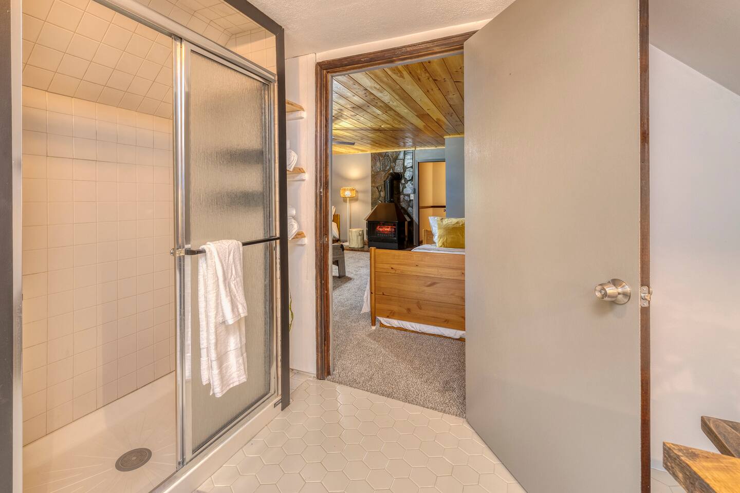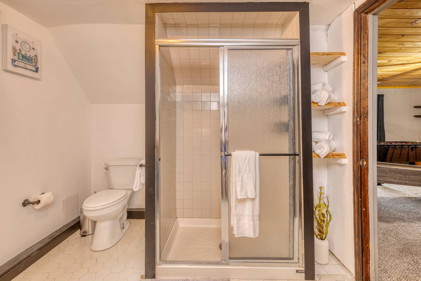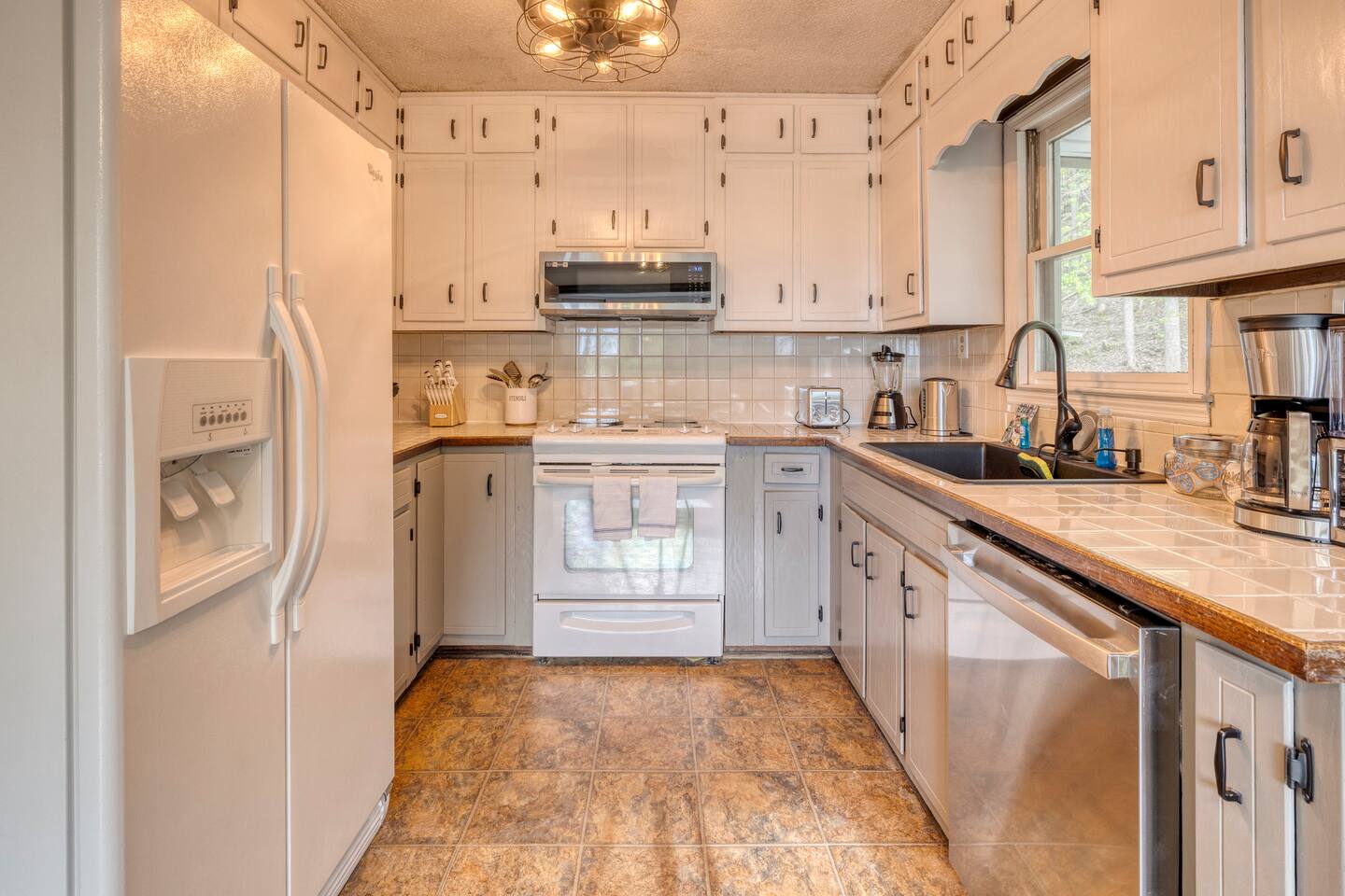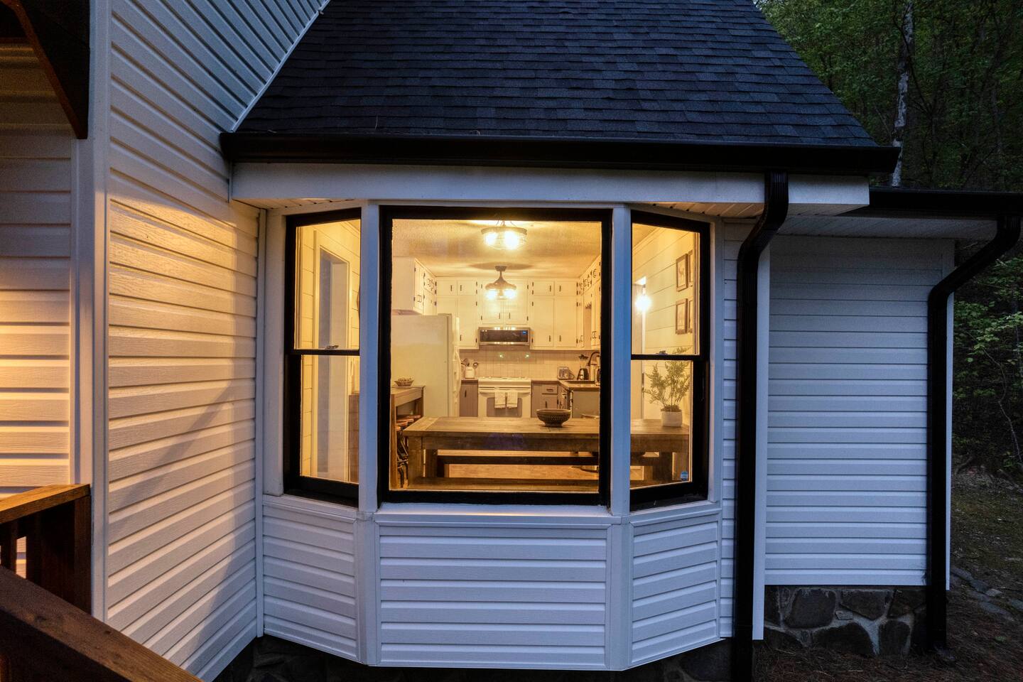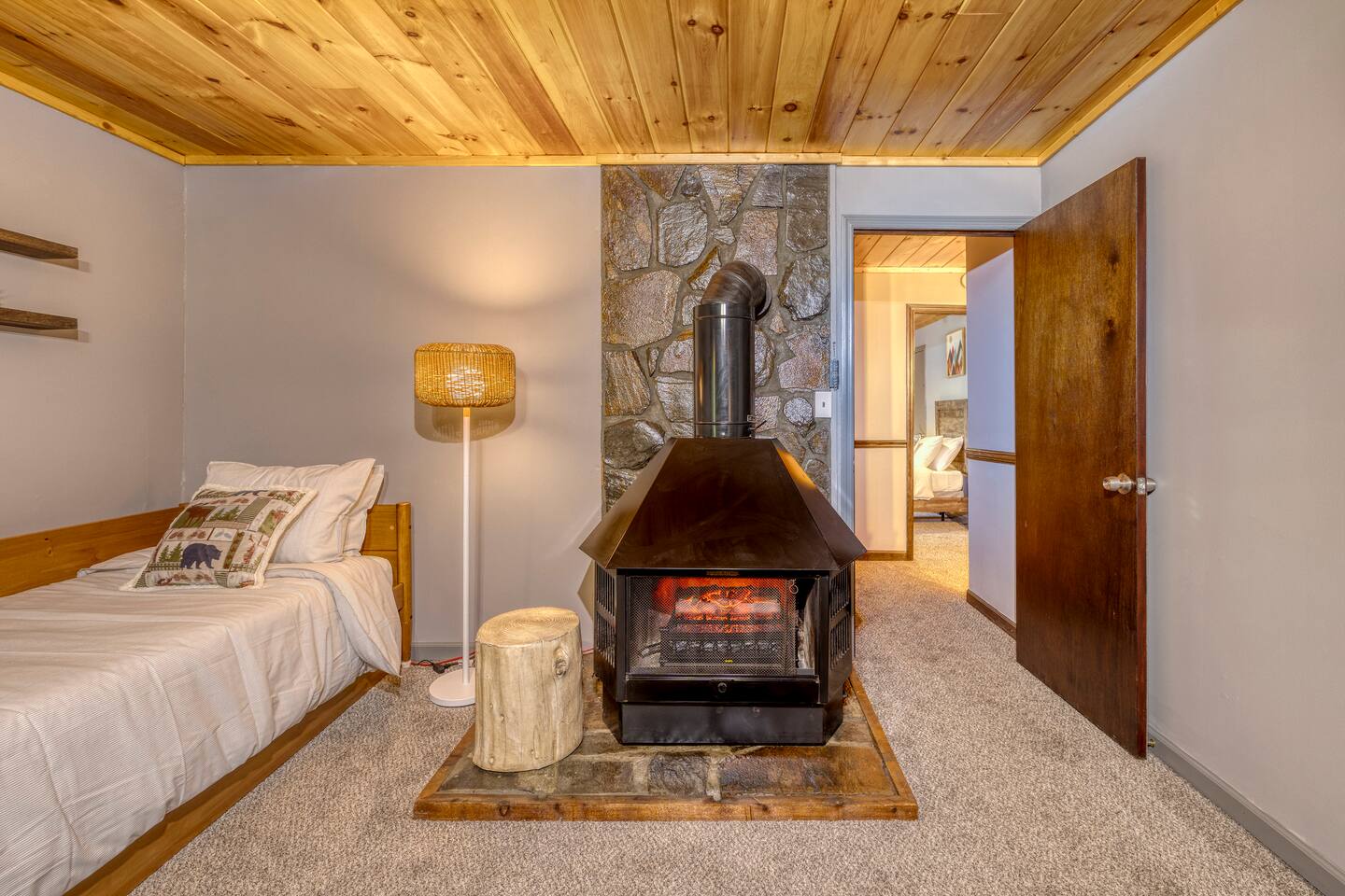 When the great outdoors is calling there is no better way to get back to nature than within this stunning custom built Chalet that gives you the ultimate in luxurious seclusion being the only home on the mountain. Make your way through the front door and feel instantly at home as you enter the spacious, open concept living room with double glass doors that lead out onto the decked balcony giving you uninterrupted views out over the woods. Watch a movie with the family on the leather lounge with the fireplace keeping everyone warm, then cook up a delicious dinner in the charming, fully equipped kitchen with all the large and small appliances you could need and a dishwasher to take care of all the cleaning up. Eat together at the stylish dining table by the bay window or up at the breakfast bar that also doubles as the perfect workspace with free WiFi to keep you connected and a coffee machine to keep you fuelled up. After a day of adventure, you’ll have four spacious bedrooms to choose from with each offering comfortable beds topped in soft, quality linen along with plenty of space to unpack • Master Bedroom – King Bed, Balcony Access, Ensuite & Smart TV • Bedroom Two – King Bed & Smart TV • Bedroom Three – Queen Bed & Twin Bed • Bedroom Four – Three Twin Beds, Three Pull Out Trundles, Ensuite & Games Along with the lavish stone wall master ensuite and the half bath on the main floor, you’ll find a second full bathroom upstairs. Each bathroom comes well appointed with all the essentials for your stay along with plenty of soft fluffy towels for each guest. The fun games room (within bedroom four) offers plenty for kids and the young at heart to enjoy with a foosball table, a skeeball game and an arcade machine. From here you can also gain access to the upper balcony or keep the doors closed on a cool night and light the fire to keep toasty warm. While the kids are playing upstairs, the lower deck is the place to be with a BBQ, alfresco dining and the luxurious hot tub overlooking the woods. Then after dark, light up the fire pit and enjoy a drink or two with a big bag of marshmallows to top off another day in paradise. So if you are looking for a true escape to the mountains with civilization only a 20 minute drive away and all the fun of the mountain and its attractions all close by – look no further than this picture perfect Chalet set over 50 acres of secluded, mountain bliss.