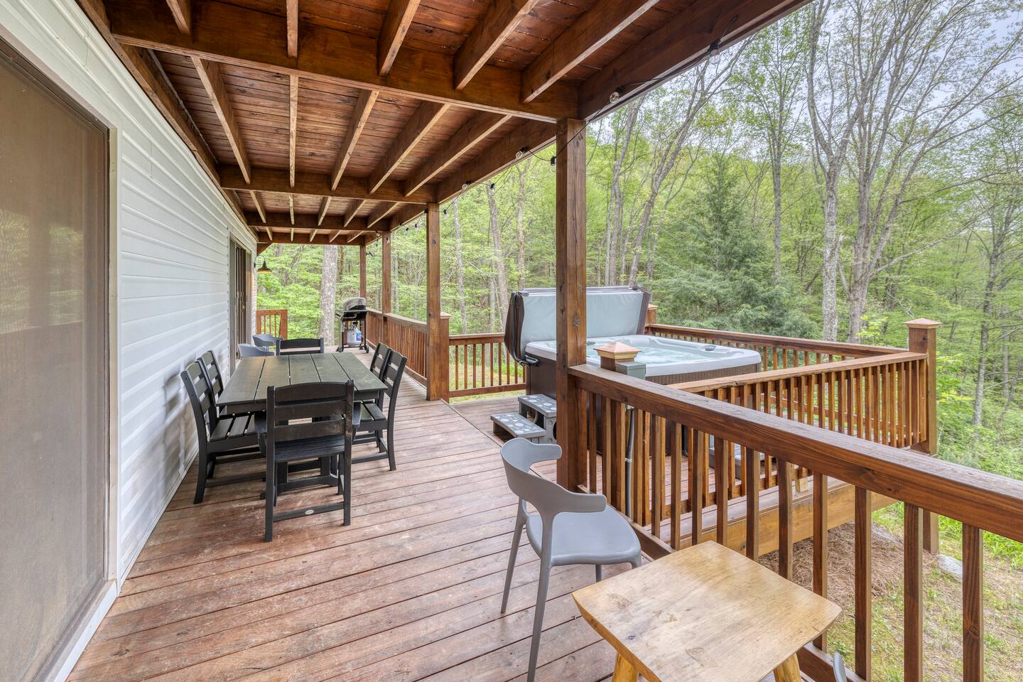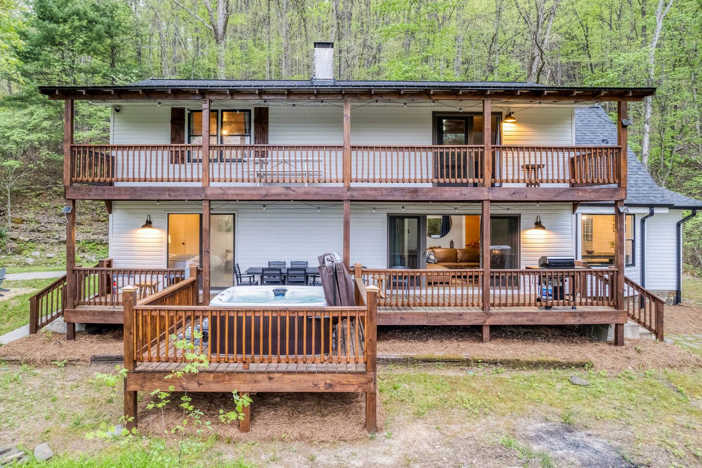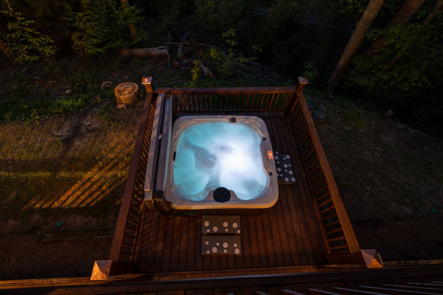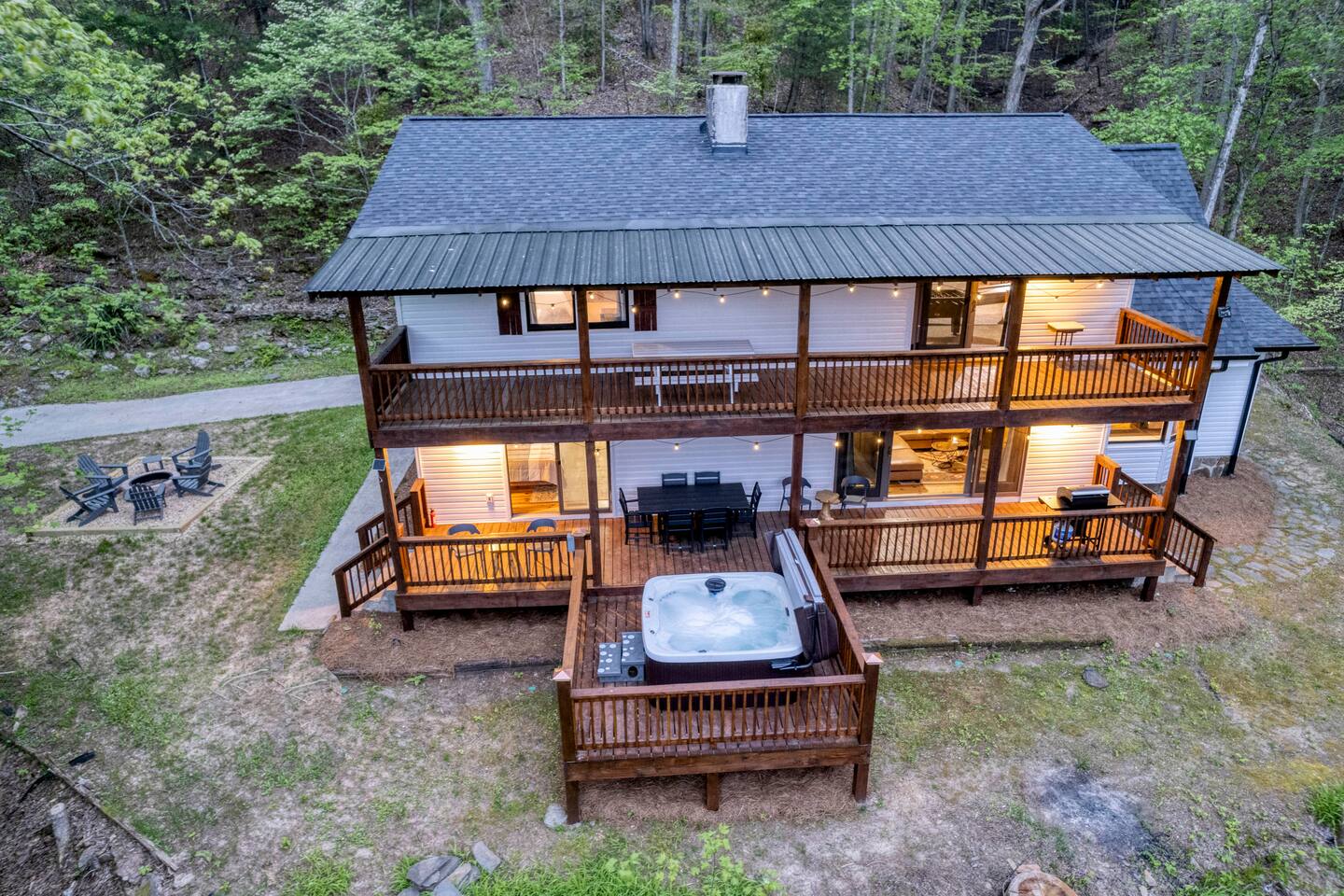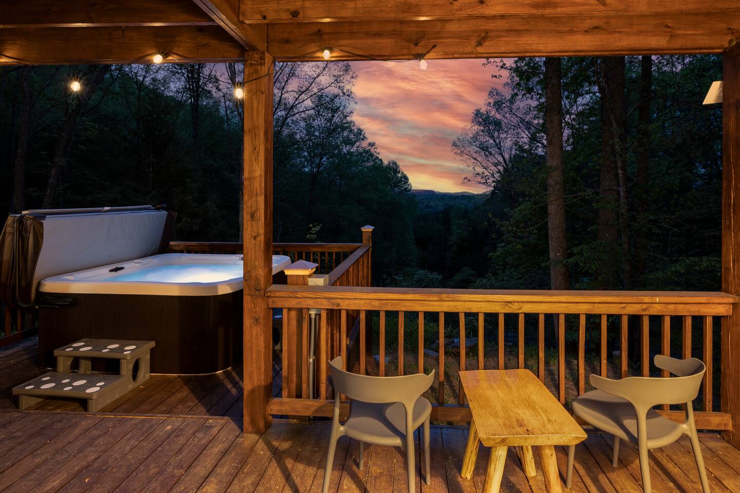 Be the king of the mountain within this incredible 2023 renovated custom-built chalet surrounded by 50 acres of secluded, lush forest. The chalet offers 2 levels of luxury mountain living with a fully equipped kitchen, open plan living, 4 bedrooms, modern bathrooms, a fun games room and two balconies with stunning views from the hot tub. You’ll be just 20 mins from Blue Ridge & McCaysville villages and easy access to restaurants, vineyards, horse riding, hiking, tubing and so much more!