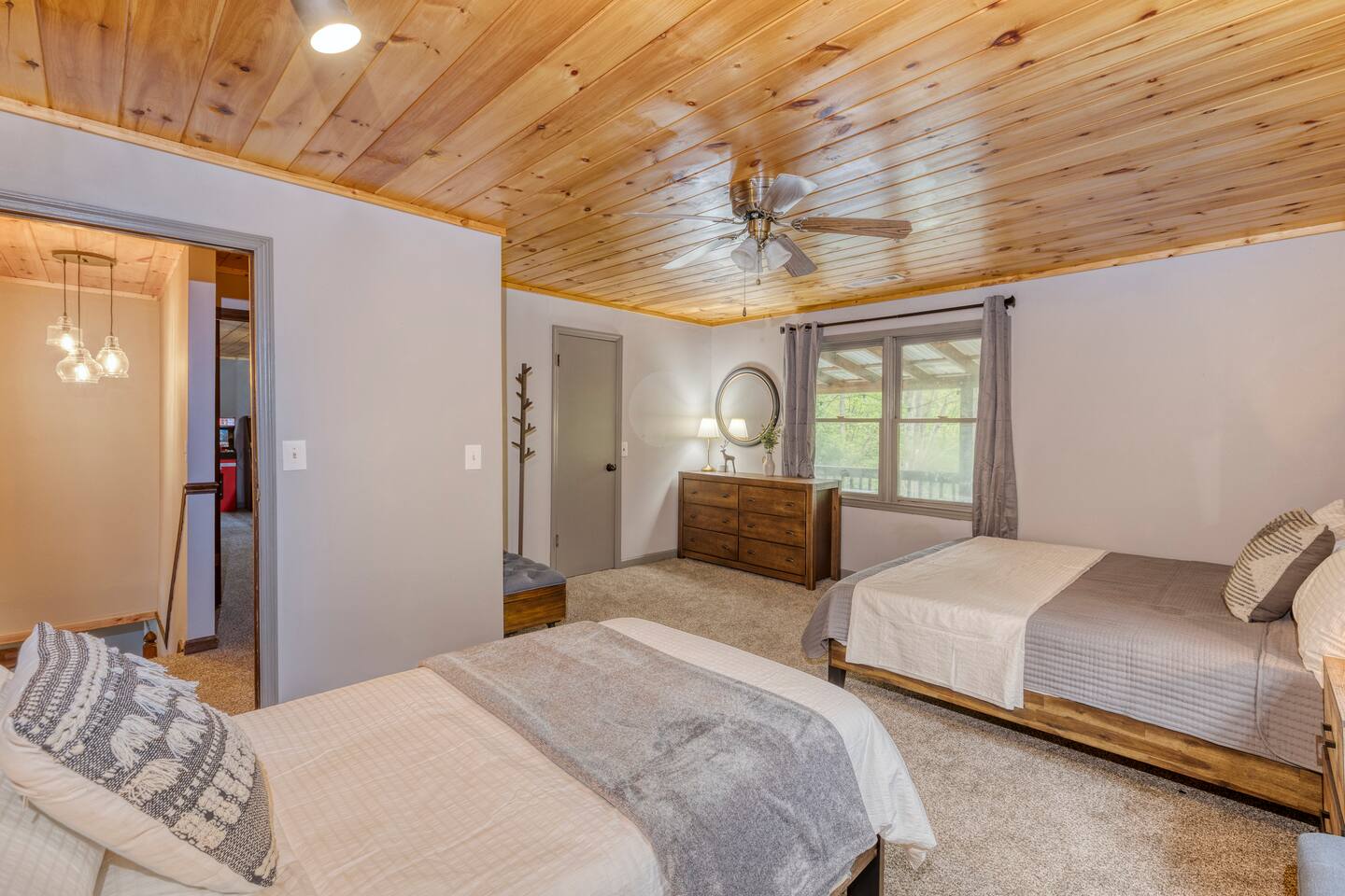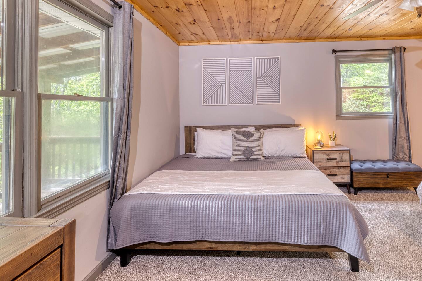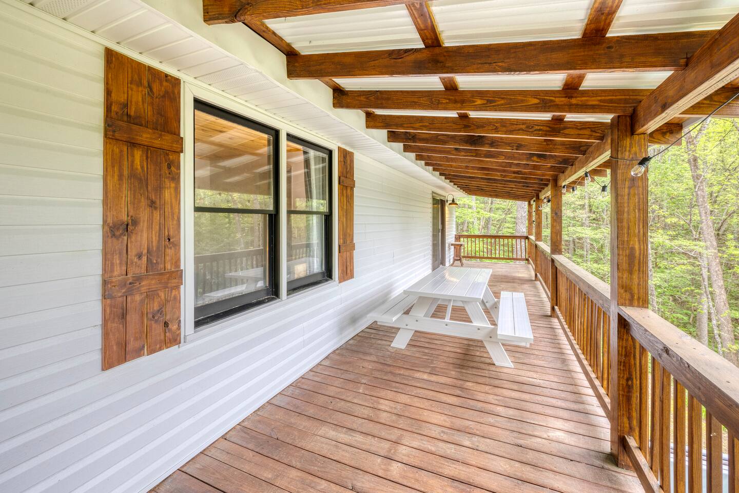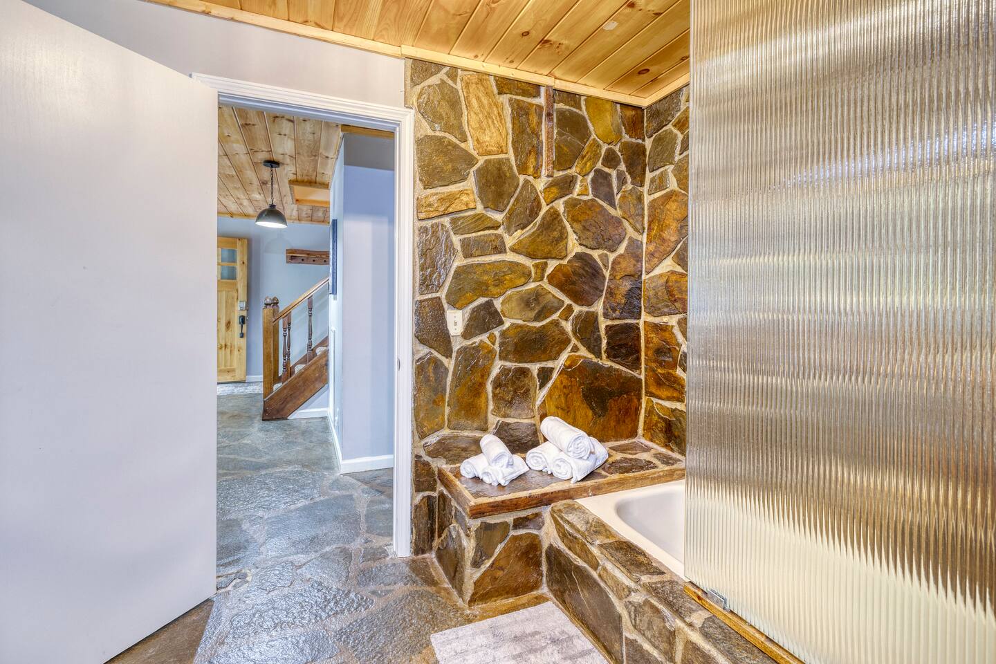 Be the king of the mountain within this incredible 2023 renovated custom-built chalet surrounded by 50 acres of secluded, lush forest. The chalet offers 2 levels of luxury mountain living with a fully equipped kitchen, open plan living, 4 bedrooms, modern bathrooms, a fun games room and two balconies with stunning views from the hot tub. You’ll be just 20 mins from Blue Ridge & McCaysville villages and easy access to restaurants, vineyards, horse riding, hiking, tubing and so much more!