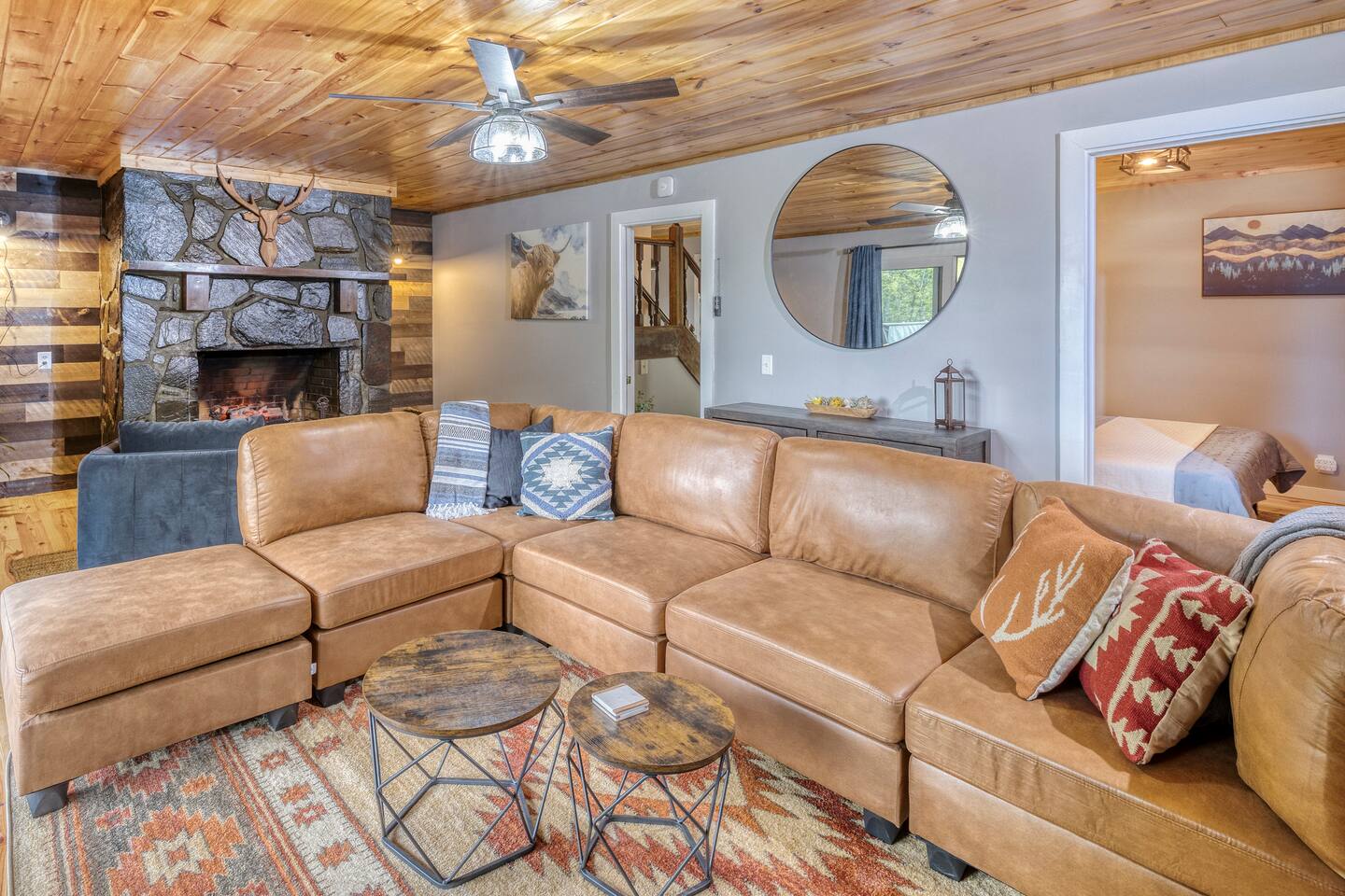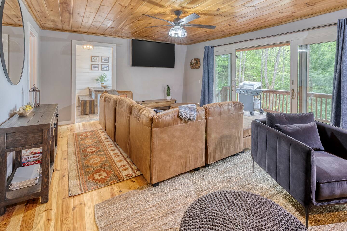 You’ll be the only house on the mountain set over 50 acres of lush wooded trees giving you the space and seclusion to relax and unwind - the perfect place to reconnect with nature. With easy access to a variety of activities and attractions, you'll have no shortage of things to do when you want to explore this beautiful part of Georgia. Located just a short 20 minute drive from Downtown Blue Ridge, you'll have access to charming shops, restaurants, and galleries. Take a leisurely stroll down Main Street and enjoy the local flavor or hop aboard the Blue Ridge Scenic Railway for a unique experience. For outdoor enthusiasts, this location is a dream come true. Take a horseback ride through the Appalachian mountains with Appalachian Trail Rides, or get your adrenaline pumping with a thrilling zipline tour from Zipline Canopy Tours or Ocoee Ziplines. The Ocoee River and Blue Ridge Lake offer opportunities for rafting, kayaking, and fishing, while the Aska Adventure Area offers hiking and river tubing. All of these activities are within a 30-minute drive from the chalet. If you're looking for a more relaxed experience, take a scenic helicopter tour with Blue Ridge Helicopter Tours or explore the local wineries. You can also indulge in the services of a private chef, like The Concierge by Chef Michael or Chef Jeff Servin & Company, to elevate your dining experience. Don't forget to visit Mercier Orchards for fresh fruit and baked goods, and take a drive to Ellijay for great restaurants, vineyards, and orchards. Rolling Thunder River Company, Toccoa Valley Campground Tubing, Blue Ridge Mountain Kayaking, Ocoee Rafting, and Wildwater offer water sports opportunities that are all within easy reach. Come stay at this charming chalet and experience all that Mineral Bluff has to offer!
